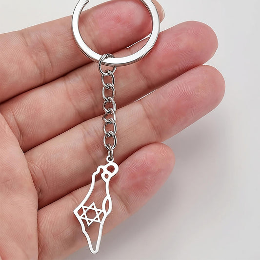 מחזיק מפתחות מפת א"י עם מגן דוד